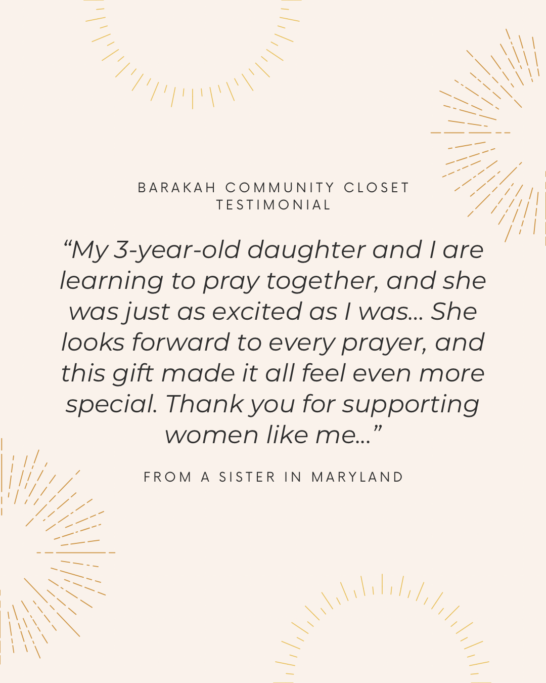 Thank you for supporting women like me. May Allah bless your work and continue to bring comfort and beauty to those who need it.