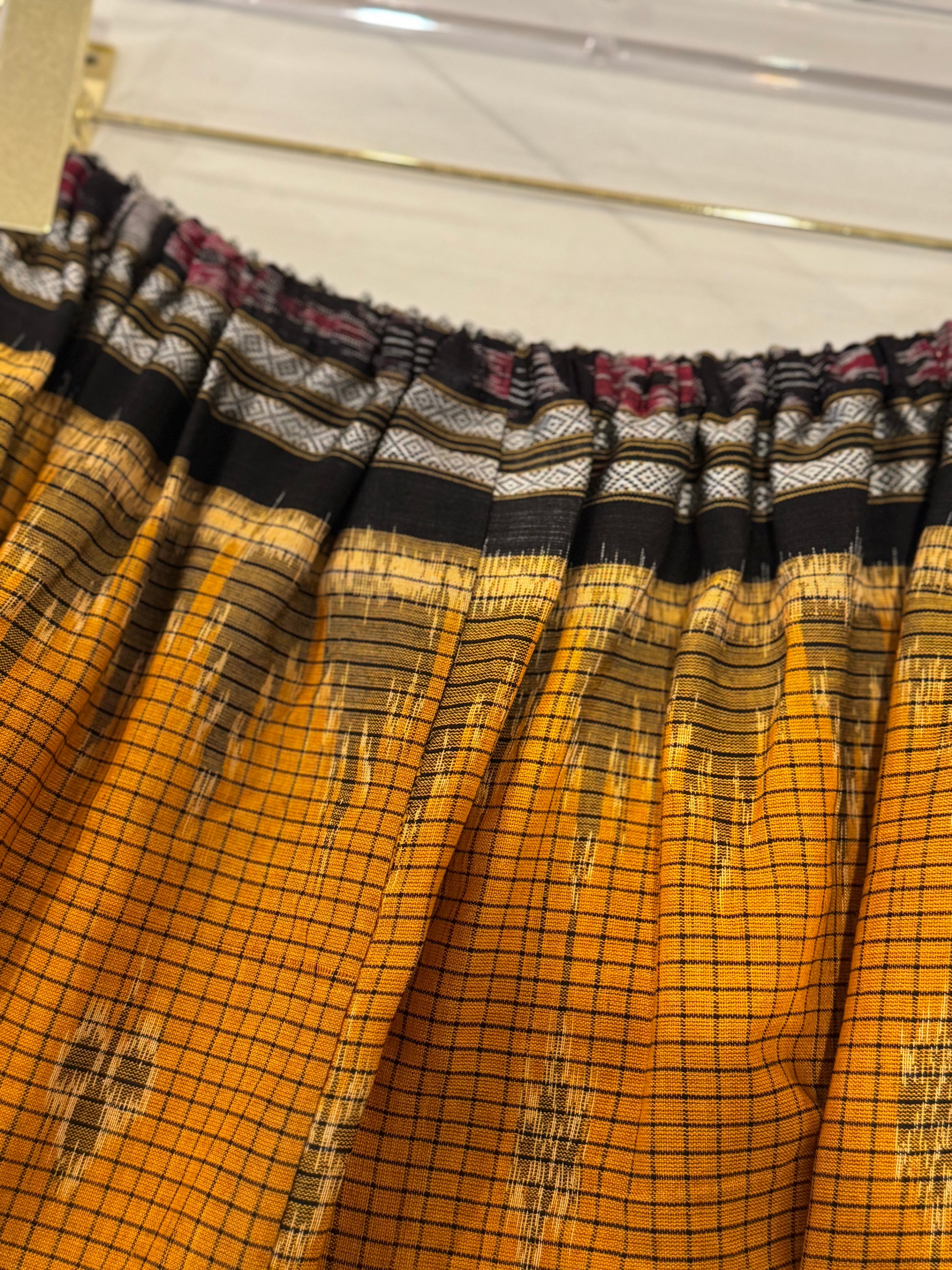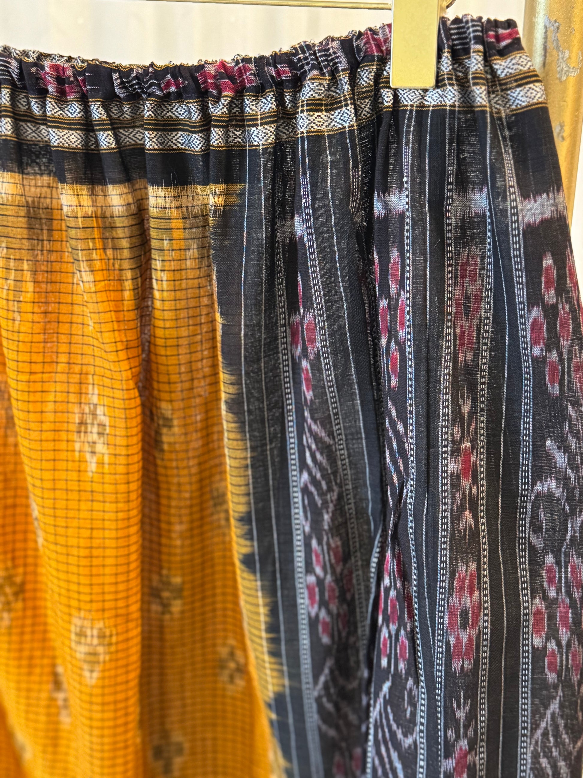 - Fabric type - upcycled cotton voile from a new sari that was donated to the closet. Very soft and flowy fabric.